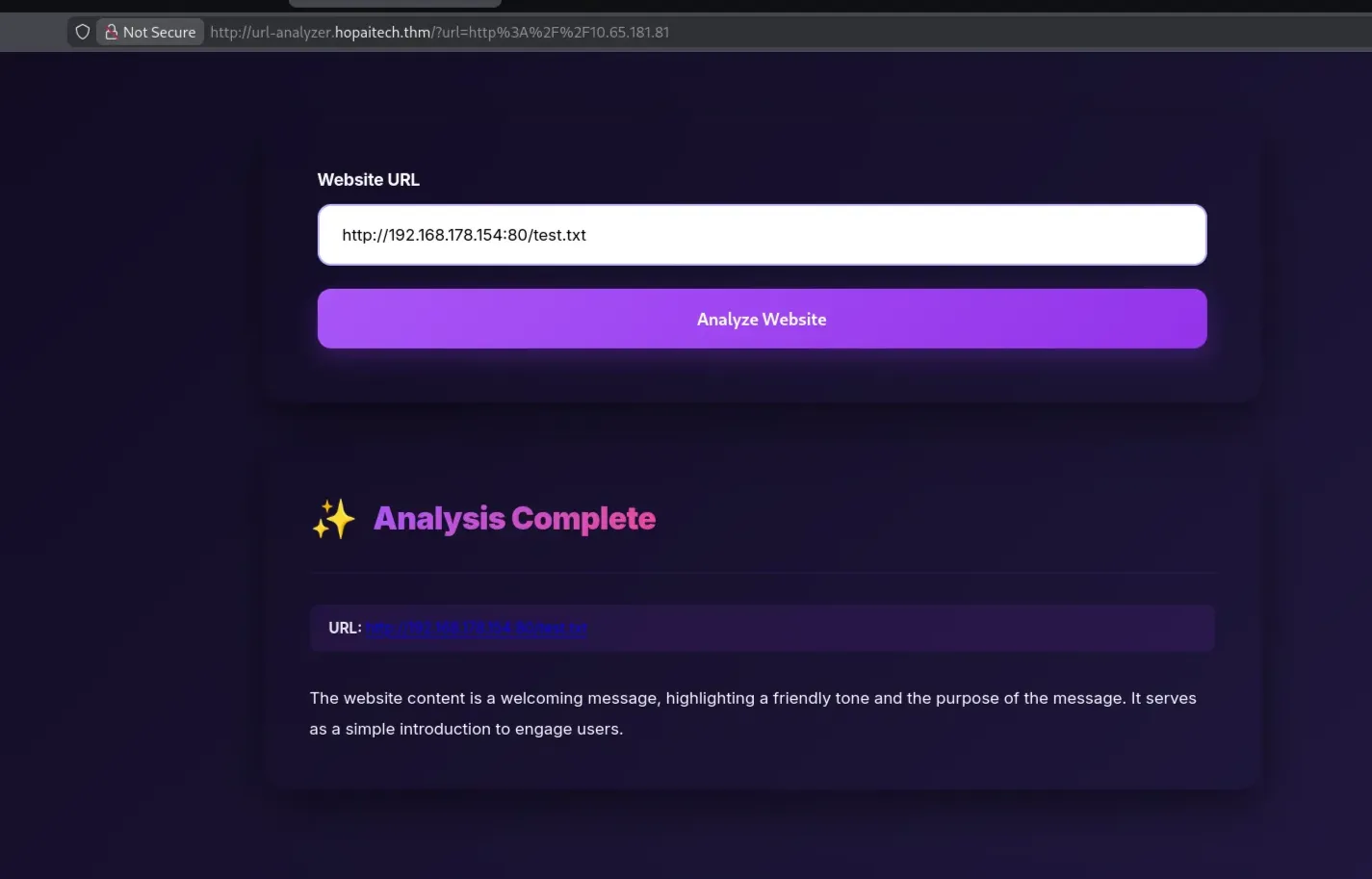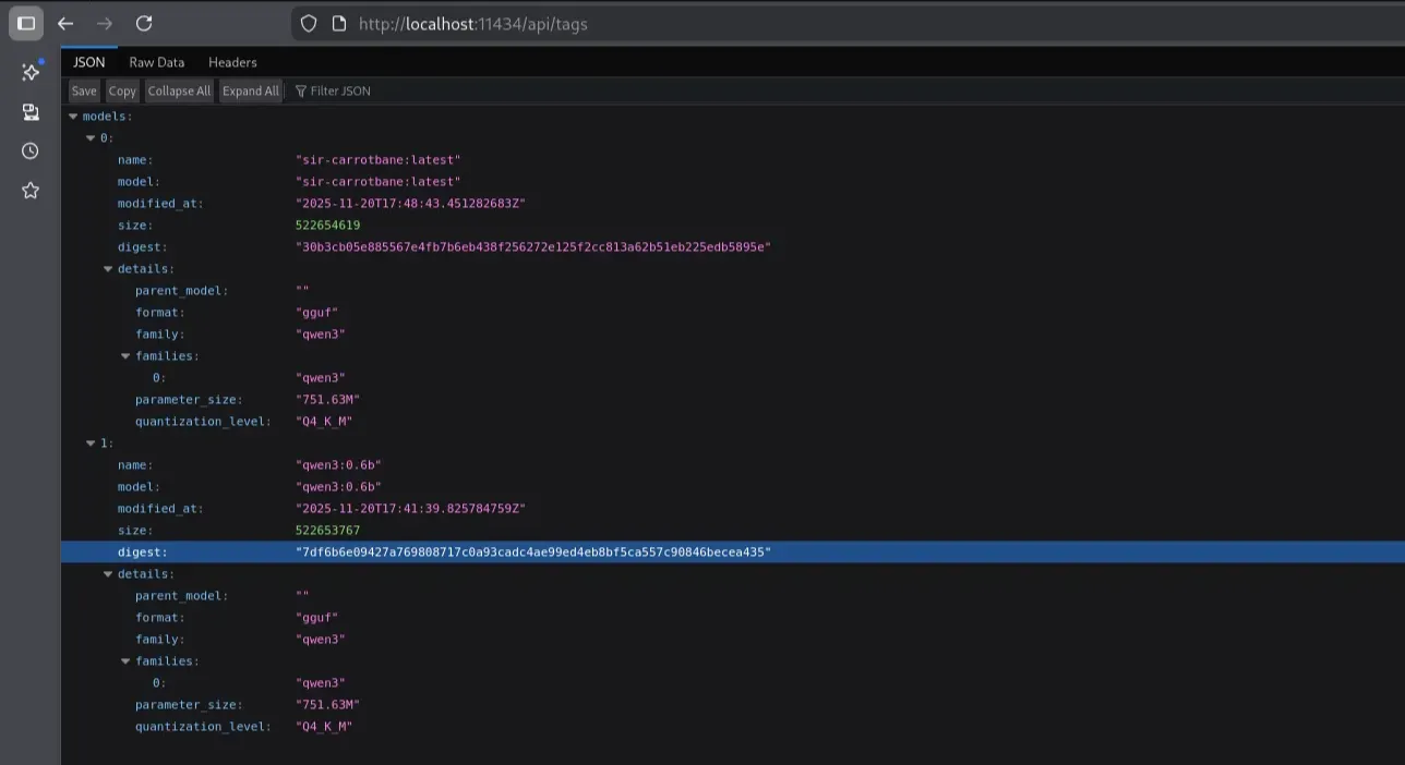 Note: After viewing the environment variables of the current process from the URL-analyzer service, the internal AI backend (Ollama) was revealed