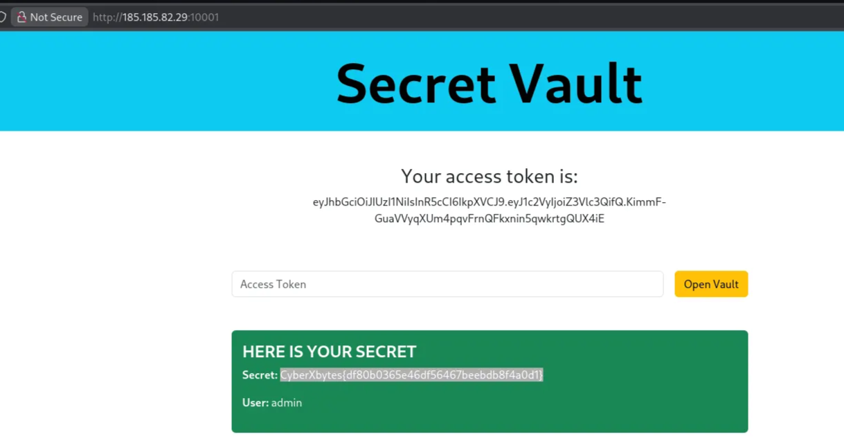 Insert the access token into the input field, and we get the flag
